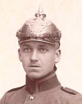 The distinctive black steel helmets of the Preußen Jäger zu Pferde (Mounted Dispatch Rider) first appeared in 1895 with the raising of the Meldereiter Abteilung (Dispatch Rider Detachments). The Meldereiter Metalhelme were made from blackened steel with a large Garde Wappen with gilt fittings, a stepped front visor, and a distinctive "lobster tail" neck guard which came to a point. The spike base for all ranks was a cloverleaf design and Kürassier Model 1894 chinscales in gilt were worn. In 1897 the Preußen line eagle Wappen was adopted and all helmets were updated with the new Reich's Kokarde, worn on the right side of the Metalhelme. Like leather Pickelhaube, Eigentums-helm (privately purchased) Metalhelme were higher quality than issued helmets with enhanced liners for comfort.