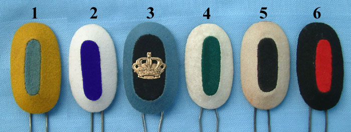 | Issued Feldzeichen were made of wood and covered in cloth. They were worn by Mannschaften (Other Ranks) from Private to Sergeant and also by the Einjährig-Freiwilliger (One year volunteer). The photo below issued Feldzeichen for Mannschaften except for Mecklenburg-Schwerin Jäger-Batl.Nr.14, Seebataillon and Marine-Infanterie, and BadenTrain (up to 1903). |